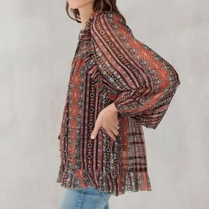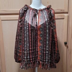 Lucky Brand Chiffon Printed Peasant Top