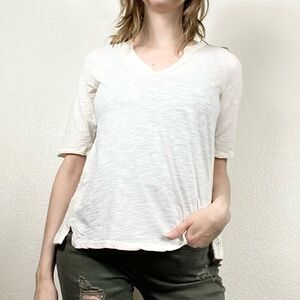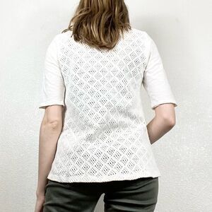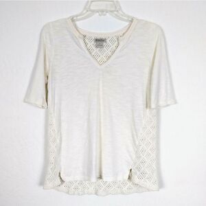 Lucky Brand Cream Diamond Mesh Vneck Tshirt