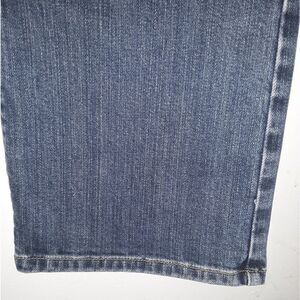 Blue jeans straight legs, slight flair. Button fly closing. Pre-owned in excellent condition. Please refer to pictures for best description and condition verification.