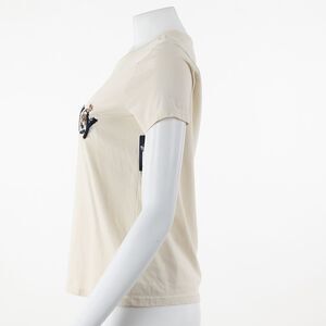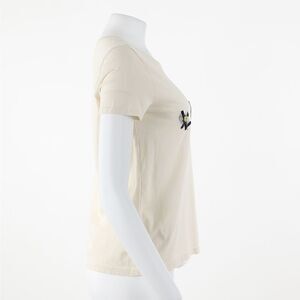 Embroidered flowers bloom from bold block letters stitched across the chest of a fresh cotton T-shirt with wardrobe-favorite potential. Crewneck Short sleeves