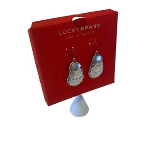 Lucky Brand Graduated Circle Drop Earrings in Hammered Silver Tone