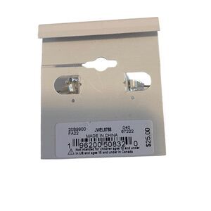 Lucky Brand Matte Silver & Pave Crystal Mini Safety Pin Charm Earrings.