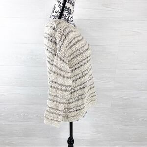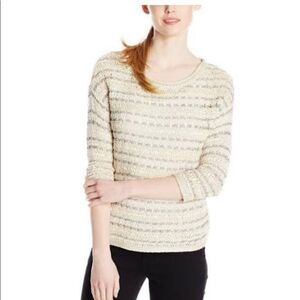 Lucky Brand Metallic pullover sweater size small. Cream with silver metallic threads. Cotton/nylon/acrylic blend material with stretch. Boatneck collar and bracelet length sleeves. No holes or stains.