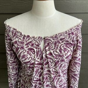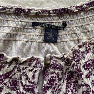 This off-the-shoulder top by Lucky Brand is in great shape! Made of 100% cotton, this shirt also features an elasticized waistband.