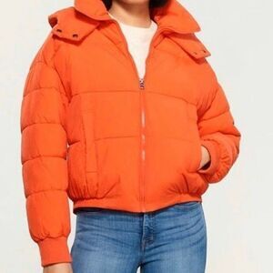 Lucky Brand Orange Drawback Long Sleeve Hoodie Puffer Jacket