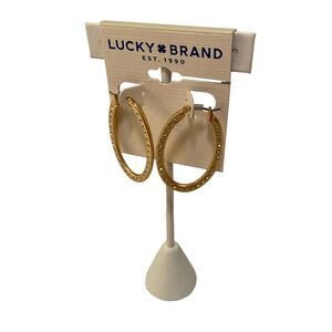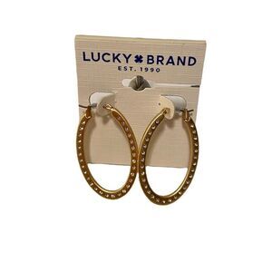 Lucky Brand Pave Oval Hoop Earrings in Matte Gold Tone.