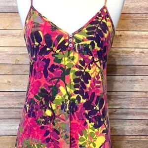 Bright and cheery empire waist dress with 3 buttons. Can wear as dress or Beach cover up. Cotton in good condition. Adjustable straps