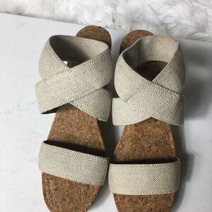 Lucky Brand cork wedge khaki elastic sandals SZ10w