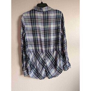 Lucky Brand ladies shirt size Medium. Plaid long sleeves with detailed button back. Beautiful soft fabric and colors! Shirt measures 21 inches across and is 25 inches long.