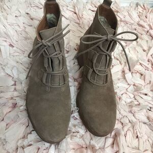Lucky brand jaemma tan suede ankle wedge bootie