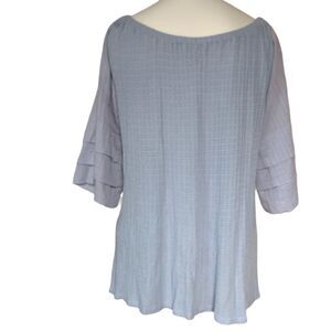 Lucky brand off shoulder top size medium. Beautiful blue with purple accents in the sleeves.