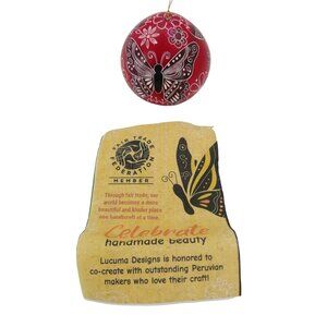 Add an artistic touch to your decor with this handcrafted red gourd ornament. Its detailed butterfly design is a unique, fair-trade treasure. Designed and handcrafted by artists in Peru. Beautiful gift for friend or family. Can be displayed year around.