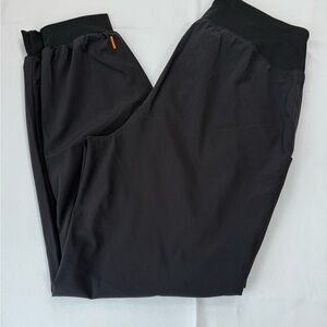 Experience ultimate comfort with Lucy's black track pants, featuring a relaxed fit and elastic waistband for easy wear. Crafted from a soft, stretchy fabric, these joggers are perfect for casual outings or lounging at home. The matte finish and tapered leg design add a touch of style to your everyday wardrobe.
