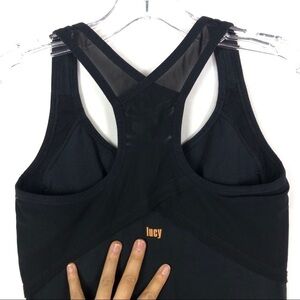 Gorgeous Lucy activewear black workout tank top! Built in bra. Zipper pocket in back. Perfect for running gym, biking, yoga!