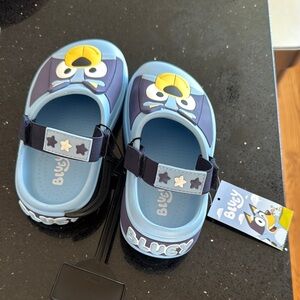 Charming blue slippers with a fun cartoon face. Easy to slip on for playful days.