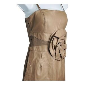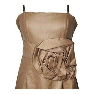 Lucy & Co. Faux Leather Dress Strapless Rosette Cocktail Taupe Size Small NWT