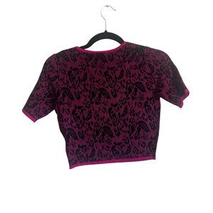 Lucy & Co Hot Pink and Black Print Crop Top Style LC6616 Size M 73% Viscose 27% Polyamide Hand Wash Cold Made In China
