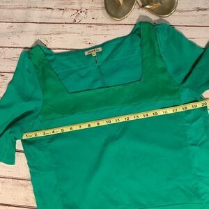 Beautiful true green silky flowy feeling top. Size Large. No flaws