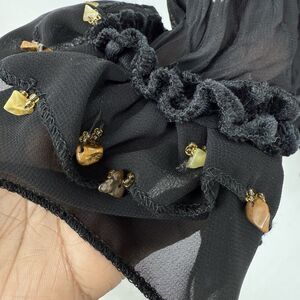 Lucy Collection Black Sheer Ruffle Beaded Tie Front Blouse Top S/M Boho Party