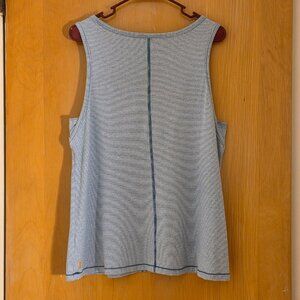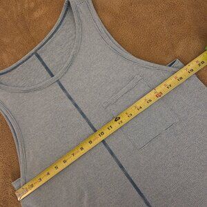 Lucy Dashing Sleeveless Striped Pocket Tank Top. Teal Blue (in some lights, the color is more green than blue). Size tag was removed - measures to a Size Large. Stretch fabric is very soft with a relaxed fit and nice drape. Can be worn alone or over a sports bra or swimsuit. Perfect for casual wear or the gym. Excellent condition.