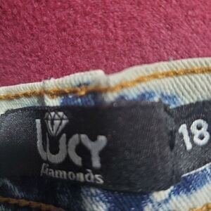 Lucy Diamonds distressed, acid wash, women's jean jeggings, size 18.