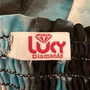 Lucy Diamonds Womens Polyester Aqua Black White Strapless Wide Leg Jumpsuit Sz L
