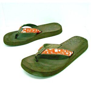 Brown Cushioned Footbed with Orange Floral Straps