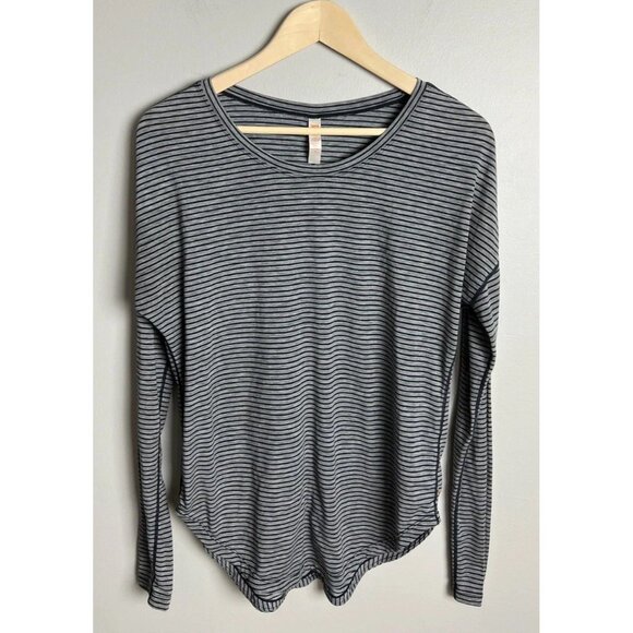 Lucy Gray Black Striped Long Sleeve Active Top Crew Neck Size Small Women’s