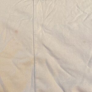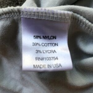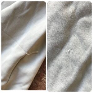 This super cozy shirt still has a lot of life left. Use it to layer or wear on its own. Very light gray with white striped down the sleeves. Zipper measures 1 inches from neck. A few snags as pictured. 58% nylon, 39% cotton and 3% Lycra. Good amount of stretch. Made in USA. Measures about 22 inches from shoulder to waist. Pit to pit is 21 inches. Some spots as pictured too.