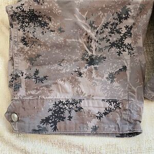 Lucy Gray/Black Camo Tree Pattern Cargo Hiking Outdoor Camping Shorts X-Small. Two front, two back pockets. Zipper and snap front closure. Elastic back waist. Belt loops. Very good pre-owned condition. Ships from a smoke and pet free home.