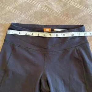 Lucy Hatha Collection Black Leggings in Size XS. Good pre owned condition. Several areas where the stitching is frayed as seen in photos. Nice weight, Ankle length leggings. Prices reflects flaws.