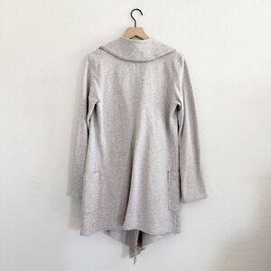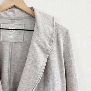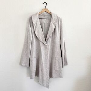 Lucy Heather Gray Terry Knit Long Cardigan Deep V Snap Closure Pockets Size M