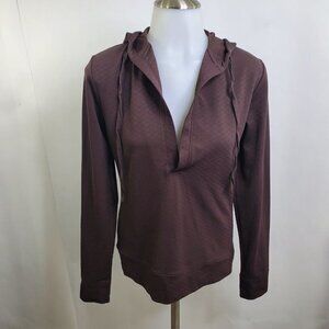 Lucy Hoodie XS Brown Textured Hood Jacket Pullover V-neck Athletic Geometric