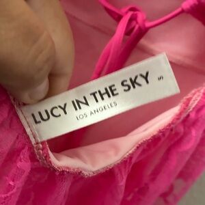 Lucy In The Sky A-Lace Chemise A-line Dress in Vibrant Pink S