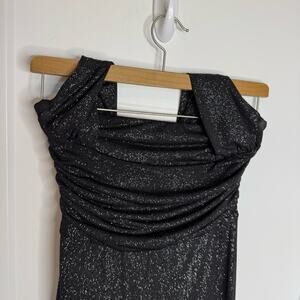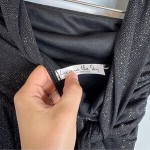 Lucy In The Sky Black Glitter Maxi Side Slit Halter Formal Prom Dress Size Small