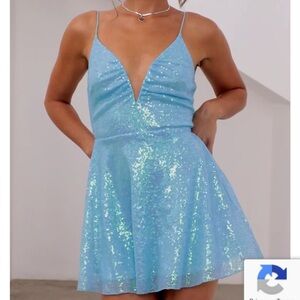 Lucy In The Sky Mei Iridescent Sequin Slip Mini Dress in Sky Blue Size XS