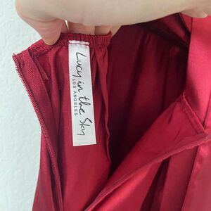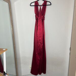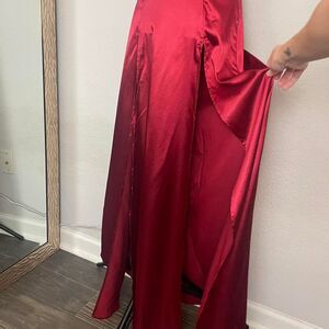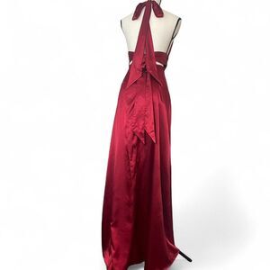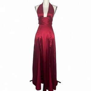 Lucy In The Sky Red Satin Maxi Halter Dress Tie Waist Split Leg Size XS