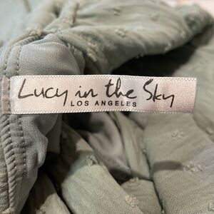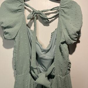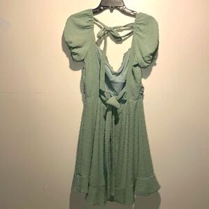 Lucy In The Sky- Sage Green Puff Sleeve Swiss Polka Dot Back Cutout Mini Dress L
