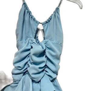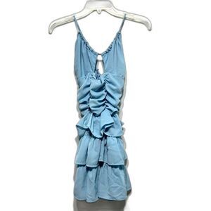 Lucy In The Sky Scout Ruffle Mini Dress Light Blue Open Tie Back Size Medium