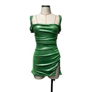 Lucy In the Sky LA Womens Size S Green Shimmer Stretch Open Back Mini Dress