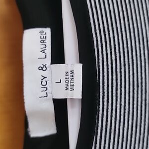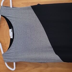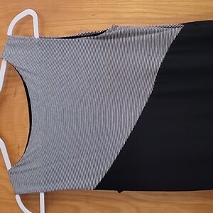 Pre owned Lucy & Laurel Black and White Striped Bodycon Dress. Form fitting, has lining, sleeveless
