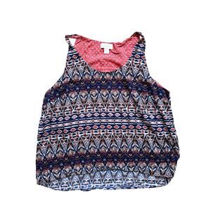 Lucy & Laurel Layered Contrast Print Rayon Tank Top Blue White Large