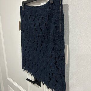 Lucy & Laurel Navy Blue Lace Floral Cutout DesignLined Skirt Size 10 Elegant NWT