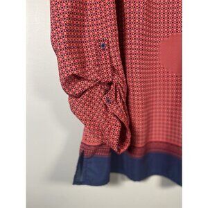 Lucy & Laurel Tunic Top 3X Womans Blouse Red Navy Fisherman Roll Tab Sleeve