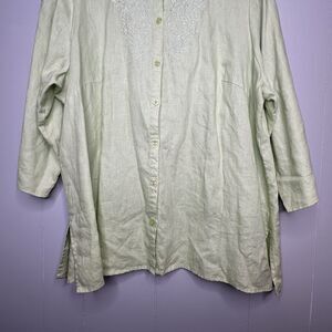 Lucy & Laurel Woman Plus Size 2X Green Blouse 100% Linen Button Up Embroidered