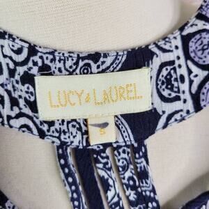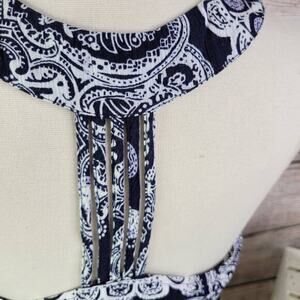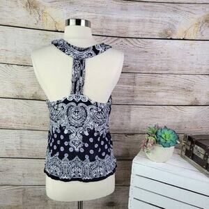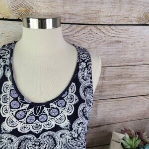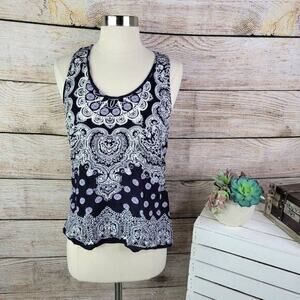 Lucy & Laurel Women's Sleeveless Strappy Back Swirl Tank Top Blue White Sz Small