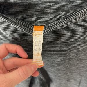 Gently Used Lucy Leggings. I wasn't finding a clear size tag on these, but my best guess is a size 4. See measurements. Mostly gray with thin black vertical stripes. Side pockets. Full length. Lucy gold bar on the ankle.