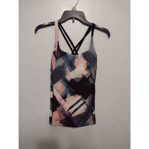 Lucy Let It Be Bra Tank Strappy Workout Top Multi Faded Geo Print XS