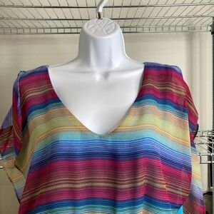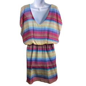 Lucy Love Womens Acapulco Striped Dress Size L V Neck Multicolor Short Sleeve