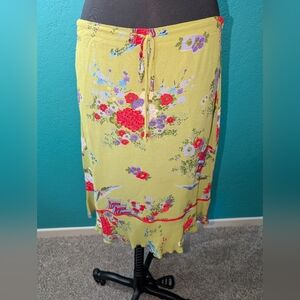 Vibrant floral skirt by Lucy Love. Features a tie waist. Perfect for a sunny day.